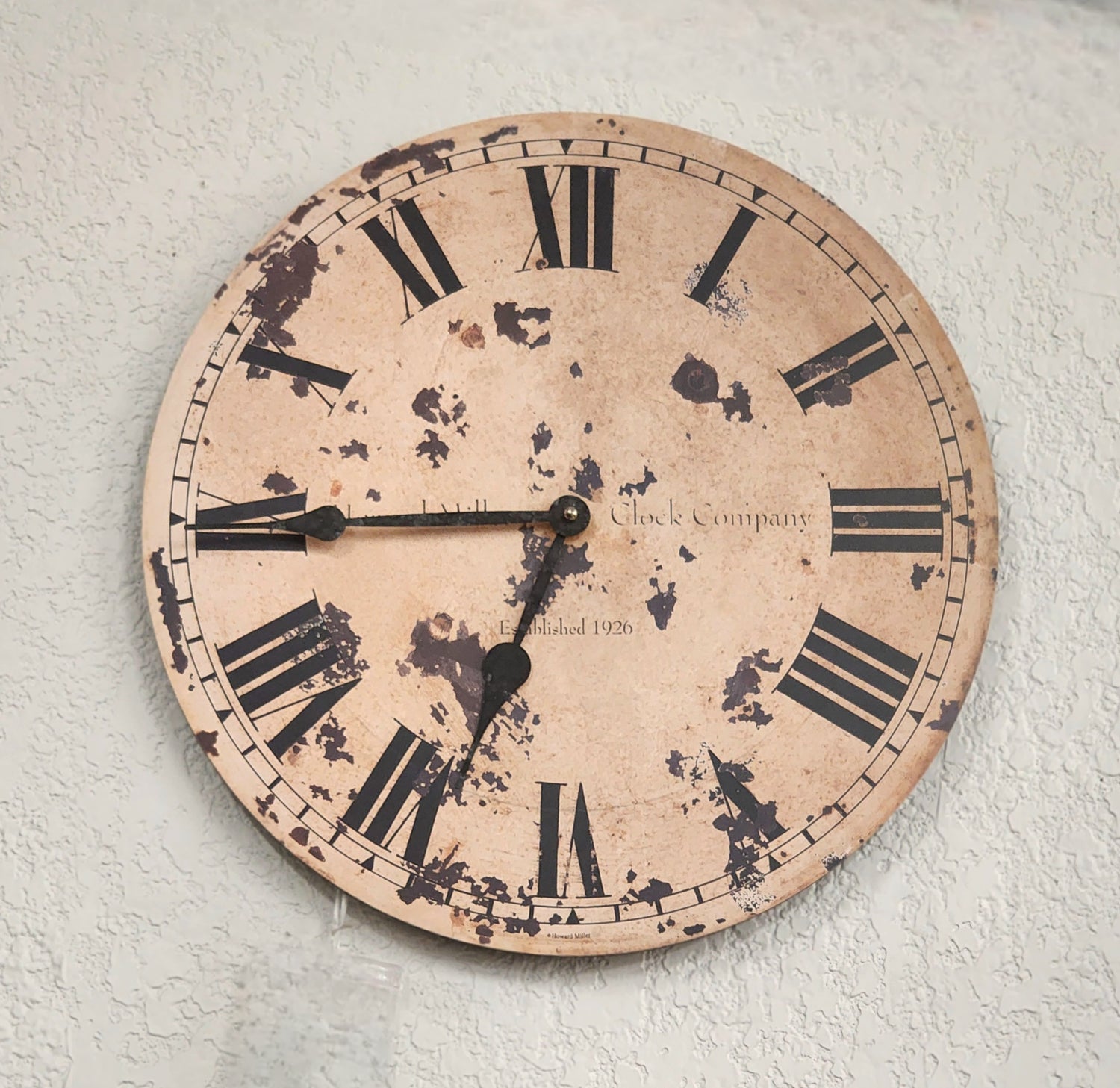 This rare and now collectable "Antique" Wall Clock from Howard Miller is the last available and in-store only. It has a charming rustic and vintage feel to it that absolutely reads as rich wine cellar, Italian countryside, or even farmhouse. It's a perfect way to bring a little character to a room.