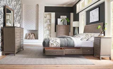 A perfect fusion of contemporary grace and urban elegance emanates from the stylish design of this collection. The subtle contrasting colors of the Astoria Sky finish are beautiful. The exquisitely crafted Ellison boasts English dovetail drawer construction and full extension metal ball-bearing drawer slides for easy access to the spacious drawers. A precisely engineered 45-degree miter face frame seamlessly surrounds spacious inset drawers. Antique Pewter drawer pulls add an appealing accent. Made from certified sustainable American Alder hardwood.