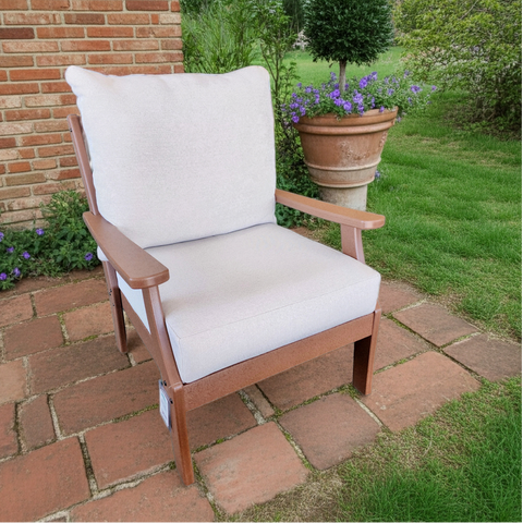 The Braxton Deep Seating Chair from Polywood balances style, form, and function. It's deep seats offer extra space to stretch out or snuggle up for ultimate relaxation. The included performance cushions resist the elements and everyday use while the POLYWOOD Select™ lumber is engineered with Microcell™ technology for superior moisture impermeability and easy cleaning.
