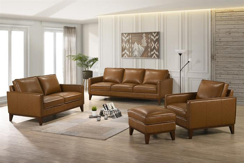 The Caspar Leather Stationary Collection is the epitome of luxury and comfort. Upholstered in rich caramel brown, 100% top grain leather, this collection exudes elegance and sophistication.