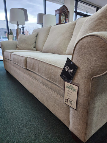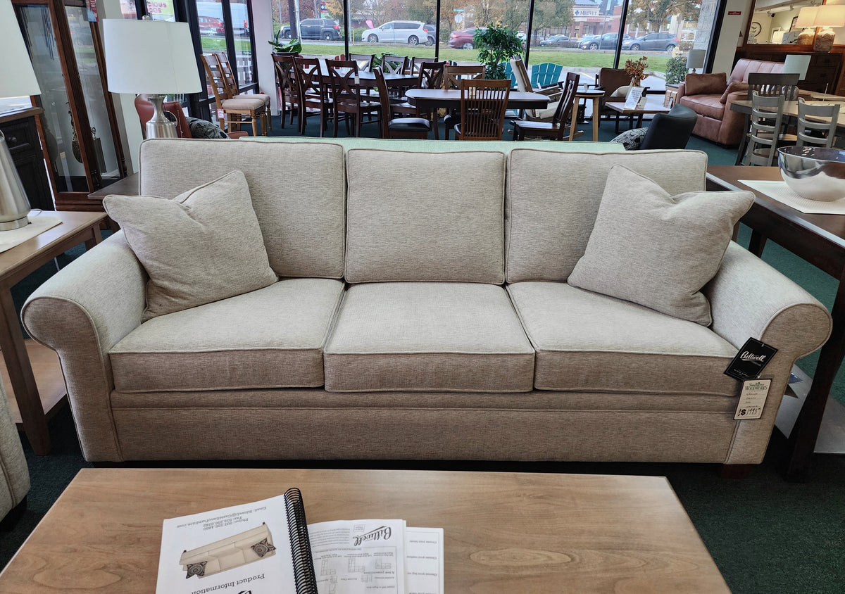 In store, we have a Choices Genoa Sofa, finished in the "Crave Driftwood" fabric. This sofa is a classic comfort, bringing a quiet sophistication to your living space with plenty of room for everyone and endless options for customization.